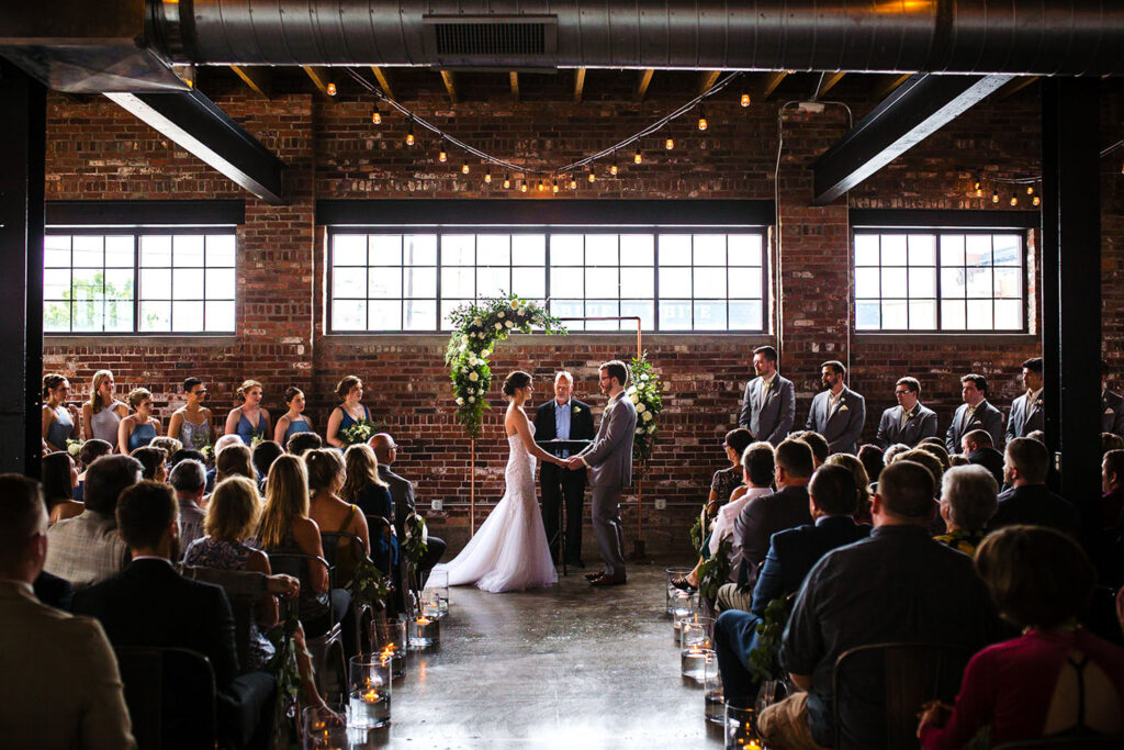 Looking for a spacious, modern and unique venue that looks good with any style in Indianapolis? INDUSTRY is a blank canvas with tall ceilings, urban brick walls, concrete floors, and features large garage doors and windows that pour in beautiful natural light. We are a flexible event space that can seamlessly host both the ceremony and reception of your dreams.